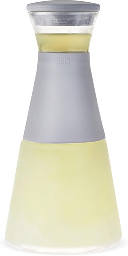 HOST Glass FREEZE Carafe Drink Containers for Fridge, Glass Juice Bottles with Lids, Glass Water Pitcher with Cooling Gel 27oz Gray Set of 1