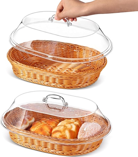 Hushee 2 Set Imitation Rattan Bread Basket with Lid Wicker Bread Baskets for Serving Woven Fruit Basket with Cover Oval Food Baskets for Food Vegetables Display(13.78 x 9.84 Inch)