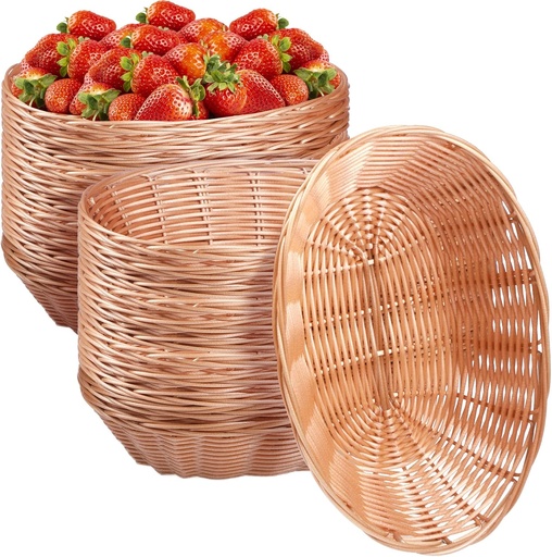 24 Pack Plastic Oval Basket Small Fruit Bread Basket Food Storage Basket Bin for Easter Gifts Empty Home Kitchen Restaurant Food Serving Storage Display Decor(Light Brown)