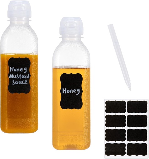 10oz Condiment Squeeze Bottles with Flip Top Lid, 2 Pack Refillable Condiment Containers Ketchup Squeeze Bottles, Leak Proof Dispenser for Syrup Oil BBQ Sauce with Labels & Markers