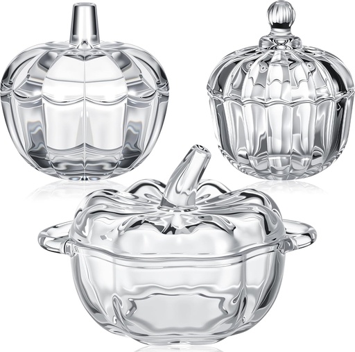 Mimorou 3 Pcs Glass Pumpkin Candy Jar Thanksgiving Clear Candy Bowl Storage with Lids 3 Sizes Fall Cute Snack Crystal Jars for Home Decoration Thanksgiving Centerpieces Wedding Party