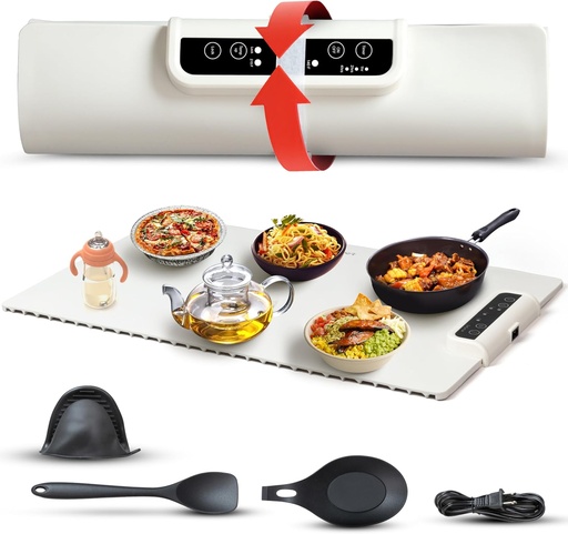 Electric Food Warming Mat - Portable Silicone Tray w/Fast Heating, Best Kitchen Gadget to Keep Food Warm for Parties, Buffets, Serving, & Thawing - Silicone Accessories Included