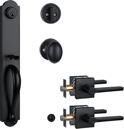 Keyed Entry Door Handleset with Knob & 2 Packs of Bed/Bath Door Levers