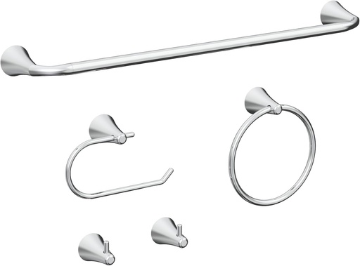 PIERCETON Collection, 5-Piece Bathroom Hardware Accessories Set, Towel Ring, Adjustable Expandable Towel Bar, Two Towel and Robe Hook, Toilet Paper Holder, Wall Mounted, Plated Chrome