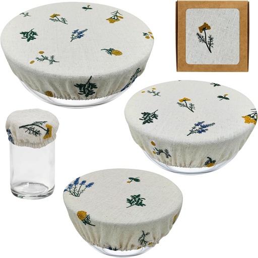 Reusable Bowl Covers (Set of 4) - Breathable Cotton Linen Sourdough Accessories - Elastic Durable Fabric Food Lids for Proofing Baskets & Bread Baking Supplies (Natural Beige)