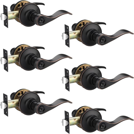 6 Pack Keyed Alike Entry Door Lever, Oil Rubbed Bronze Door Knobs, Interior Door Handle, Wave Door Lock for Bed/Bath Room, Reversible for Left/Right Handed Doors