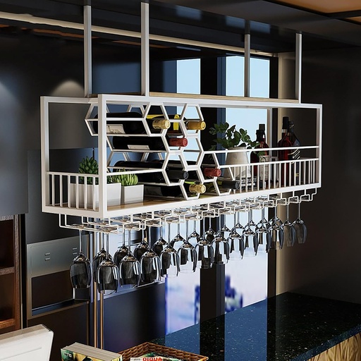 Ceiling Wine Rack with Stemware Hanger,Wine Glass Rack Holder,Wine Display Stand,Hanging Wine Storage Rack,Wall Mounted Wine Rack,Floating Home Bar Wall Shelves Shelf for Kitchen,Wine Cellar
