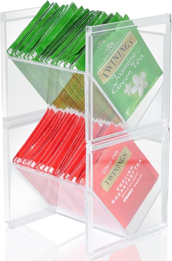 UPKOCH Countertop Tea Bag Storage Organizer Compartments Transparent Design for Home Kitchen Office Coffee Shop for Tea and Coffee Packet Organization