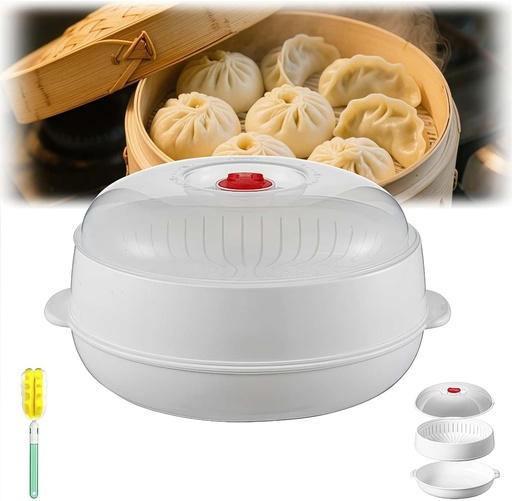 Microwave Steamer,2025 New Microwave Oven Steamer with Lid and Tray,Microwave for Vegetables,Independent Design with Drainage Layer, Used for Cooking Dumpling and Vegetables (Single layer)