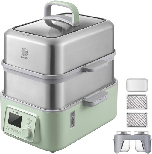 BUYDEEM G563-A501 Electric Food Steamer for Cooking, 2 Tire Stainless Steel Steamer with Slow Cook Mode, 1500W, 10-Quart, Green