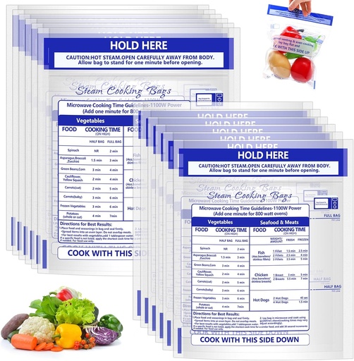100 Pcs Microwave Steam Bags for Cooking 50 Medium and 50 Large Sizes Reusable Zipper Steamer Bags Microwave Steaming Bag for Vegetables Potatoes Meat Frozen Food (100)