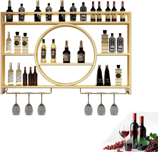 Wall Mounted Wine Rack Wine Glass Goblet Holder, Metal Hanging Wine Holder Bar Wine Cellar Kitchen Counter Floating Storage Display Shelves