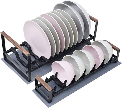 2 Tier Dish Drainer Rack,Dish Drying Rack,Plates Bowls Holders Organizer for Kitchen Cabinets|Vertical Alumium Dish Storage Drying Display Rack for Counter,Cupboard,Drawer Corner,Easy to Ins