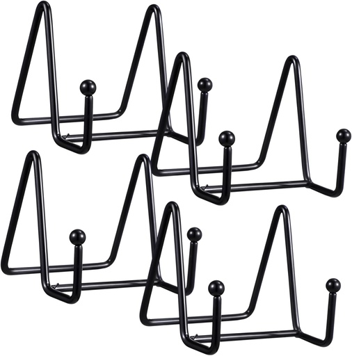 4 Pcs Metal Plate Display Stands Plate Holders for Dishes Photos Books and Art Stylish Table Easels for Home Cafe Office and Exhibition Use