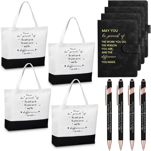 Paterr 12 Pcs Employee Appreciation Gifts Bulk Motivational Tote Bags Notebooks Pens Team Gifts for Employees Coworkers Teachers