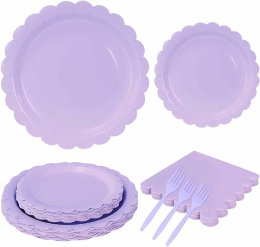 96 Pcs Light Purple Plates and Napkins Party Supply Serve 24 Guests Including Purple Scalloped Paper Plates and Napkins Plastic Forks for Baby Shower Birthday Party Disposable Dinnerware Set