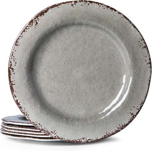 LEHAHA 6 Piece Crackle 11 Inch Melamine Dinner Plate, Set of 6, 100% Melamine Plates Set, Big Size Salad Plates, Unbreakable Serving Dishes Great for Indoor and Outdoor Use, Gray
