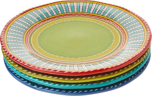 Valencia 11.25" Ceramic Dinner Plates Set of 4 – Colorful Boho Style Plates for Dinner, Microwave & Dishwasher Safe, Vibrant Glazed Tableware for Indoor Outdoor Use
