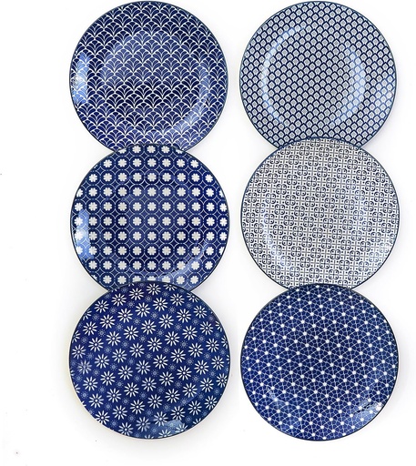 AntoKueh 10.5 inch Dinner Plates, Blue Porcelain Dessert Plate Set of 6, Large Size Ceramic Plates for Kitchen, Pizza, Pasta, Dishwasher Safe, Vintage