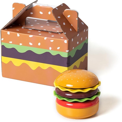 Mini Ceramic Sauce Plates Sets (6 Pieces), Cute Hamburg Style Dessert Plates & Snack Bowls with Lid Sets. Novel Tableware Gift.