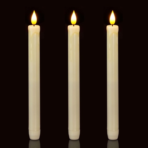 Homemory 3 Pack Flameless Taper Candles, No Remote, Realistic Flickering Battery Operated Candlesticks, Ivory LED Plastic Candle Safe for Weddings, Table Decor, Christmas, and Halloween