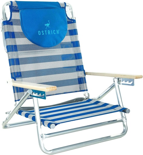 Ostrich South Beach Sand Chair, Beach Reclining Lawn Chair w/Carry Strap, Outdoor Furniture for Pool, Camping, or Backyard, Blue Stripe