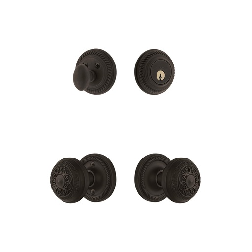 Nostalgic Warehouse Rope Rosette Entry Set with Egg & Dart Knob in Oil-Rubbed Bronze-2 3/4" Backset-Universal Handing