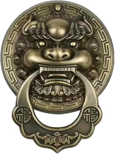 for Front Door Heavy Duty Door Knock with Screws Antique Brass Door Handle Chinese Decorative Ring Knocker(A,Dia 17.5cm)