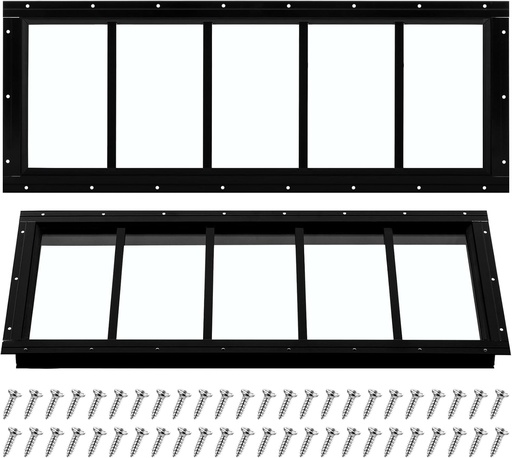 Tandefio 2 Pack 10'' X 29'' Black Basement Garage Door Flush Mount Shed Window with Tempered Glass Household Windows with Screws for Chicken Coop Sheds Barns Playhouse