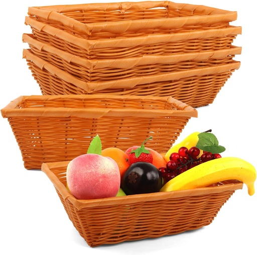 Nsmykhg 6 Pcs Woven Bread Baskets, Plastic Square Small Food & Gift Baskets, Brown Storage for Fruits, Vegetables, Snacks, Empty Serving Kitchen & Restaurant Baskets, 11.8"x7.87"x2.75"