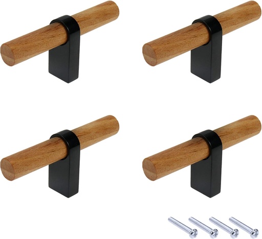 Mcredy Kitchen Cabinet Handles 4 Pcs Black Wooden Cabinet Drawers Pulls Knobs for Wardrobe Dresser Closet, 2.87" Length