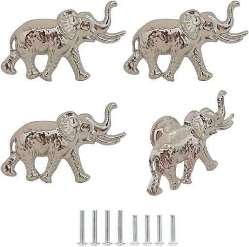 Elephant Cabinet Knobs, Vintage Decorative Metal Animal Elephant Shape Knobs Pulls Handles for Door Drawer Cupboard Closet, Antique Dresser Knobs Home Hardware Furniture Handle 4Pcs (Silver)