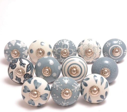 Eleet Assorted Ceramic Cabinet Knobs - Vintage Cabinet Cupboard Door & Drawer Pulls Chrome Hardware (Ceramic Knobs Set of 12, Grey & White)
