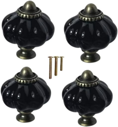 4 pcs Black Pumpkin Knobs, Vintage Ceramic Cabinet Knobs, Dresser, Drawer,Door Knobs Drawer Pulls Dresser Handles with Mounting Screws