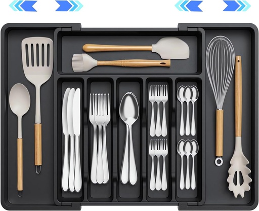 Flatware Organizers - Kitchen Drawer Organizer for Utensils and Silverware Expandable Silverware Holder and Cutlery Tray Black Kitchen Decor and Accessories Large Storage Capacity