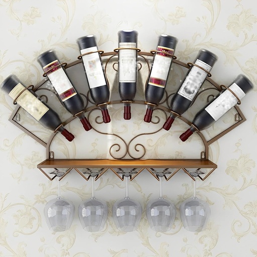 Vintage Wine Racks Wall Mounted Wine Bottle Stemware Holder, Wine Glass Hanging Rack for Home Kitchen Decor, Bar, Wine Cellar, Holds 7 Wine Bottles and 5 Wine Glasses, 86 * 40cm (Color : Bro