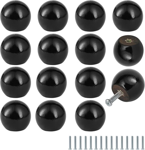 FoDau770 30pcs Black Wood Knobs, Round Ball Cabinet Knobs Vintage Drawer Pulls, Natural Wooden Cabinet Hardware for Furniture Drawer Dresser Wardrobe Cupboard - 1" Diameter