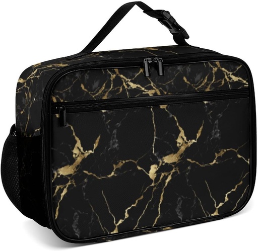 PrelerDIY Black Marble Reusable Lunch Box Insulated Lunch Bag Cooler Bag Lunchbox Meal Food Container Tote Bag for Women Kids Girls Boy School Camping Hiking Picnic Beach Travel