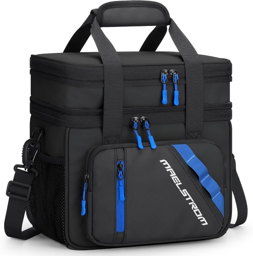 Maelstrom Lunch Box, 20L Insulated Lunch Bag for Men Women, Expandable Double Deck Leakproof Cooler Bag with 6 Pockets, Reusable Lunch Tote Bag for Work, Picnic, Travel, Black